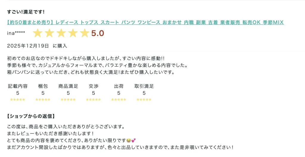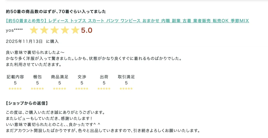 - 届いてみたら半分以上がゴミ同然のボロ服だった、という話はよくある話