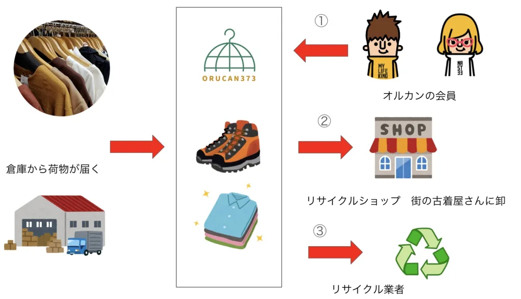 orucan373は、これら廃棄される運命にある衣類を独自のルートで回収し、必要としている販売者に繋げる「循環型エコシステム」を構築しているのです。